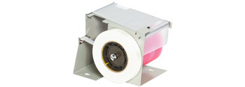 Labels are applied and protected in one time-saving operation, accommodating roll widths up to 4" wide. Mounts securely on counter or work table. Includes side-mounted, 3/4" wide auxiliary dispenser.