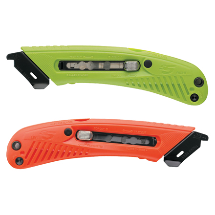 Features integrated, replaceable film cutter that flips open and a convenient 5 blade storage compartment within the handle.